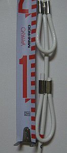 ロープ先端は、右の写真のように長さ10cmほどの輪となっており、またこの輪の先端を0(ゼロ)メートルとしています。ご使用時には、ナスカンの長さと、ベーラー等の調査機器の長さをご確認いただき、適切な深度でご利用ください。